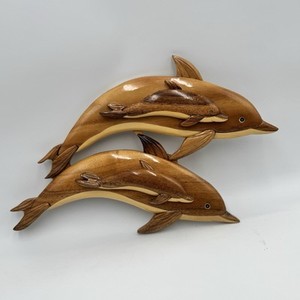 Dolphins Intarsia Wall Art Woodcraft By Jim Coleman Hand Made Approx 16x10”