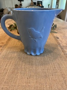 Vintage April Cornell for Silvestri Blue Raised Bird Ceramic Pitcher-7”