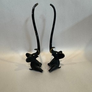 Pair Black Painted Metal Elephant Figurines Ring Holders Long Trunks READ