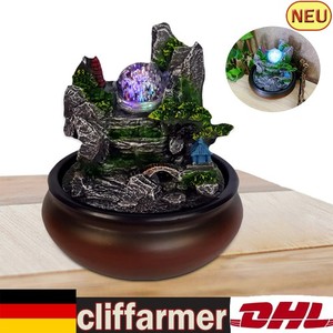Indoor Fountain Resin Rockery Waterfall with LED Lighting Desktop Ornament