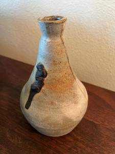Pottery Brutalist Bud Vase Handmade Partial Cream Orange Brown7.5” Tall