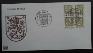 1977 Finland Olive Green Lion FDC ties 4 Stamps cd Hameenlinna