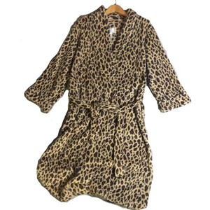 Oscar de la Renta Women’s Robe Size S/M Leopard Print Shawl Collar Long Pockets