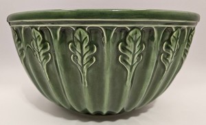 Furio Home Green Leaf Ceramic Mixing Bowl 10.25" Embossed Leaf Design