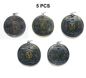5 PCS Lot Tibetan Silver Pendant Double Side Filigree Carved Design Nepal Ethnic