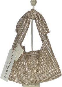 Madison West Aurora Borealis Gold Crystal Pearl Bow Handle Evening Hand Bag NEW