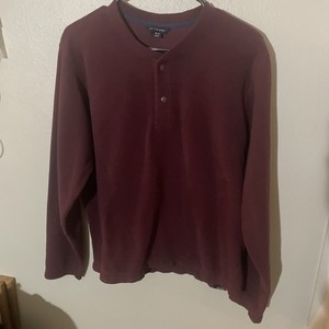 Lands' End Men’s Maroon Fleece Pullover Lightweight Long Sleeve Shirt Med