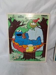 1988 Vintage Playskool Wood Puzzle Sesame Street Cookie Monster Muppet 315-29