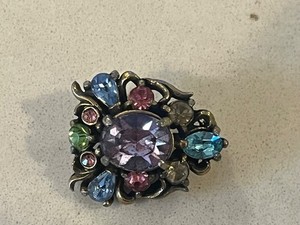 Vtg Hollycraft Copr 1950 Pastel Rhinestone Brooch Pin Signed