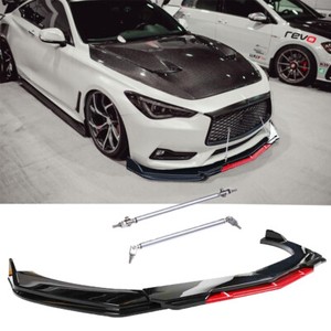 Front Bumper Lip Splitter Body Kit + Strut Rods For Infiniti G35 G37 Q40 Q50 Q60