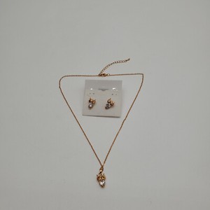 Gold Tone and Rhinestone Pierced Owl Earrings with Matching Pendant and Necklace