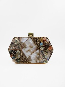 Designer Natural Marble Stone Purse Inlaid Brass Clutch Bag for Wedding