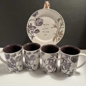 Set 4 Grasslands Road Hearts With Love Coffee/Tea Handled Mug Floral with Plate