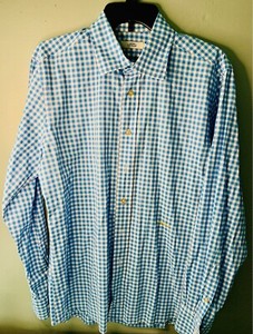 0039 ITALY Cotton Checked L/S Shirt Mens L Blue/White Preowned