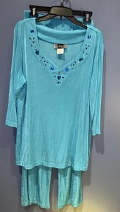 1X Leisure Set, Teal Stretch Bling Slinky Brand Vintage USA Traveler