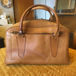 VINTAGE 1970s SMALL UNBRANDED ZIPPED PU TRAVEL CARRY BAG