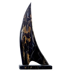 Barca con Vele Scultura in Marmo Portoro e Marquinia Nautic Home Design H 36cm