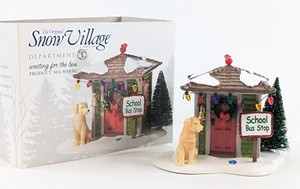 Dept 56 Snow Village - WAITING FOR THE BUS 809010 - Stop Golden Retriever Lab