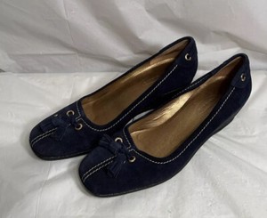 Talbots Shoes Womens 7 1/2 AA Navy Blue Suede Leather Casual Wedge Heels
