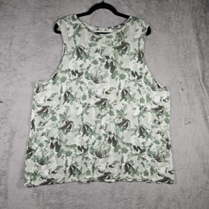 Nine West White w Greens Soft Inkblot Stretch Round Neck Tank Top Sz 2XL NWOT