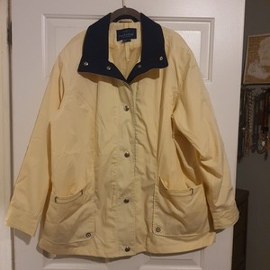 Womens Mackintosh New England Lt. Yellow/Dk. Blue Full Snap Up Rain Coat Size XL