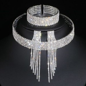 Women Necklace Tassel Crystal Bridal Jewelry Rhinestone Earrings Bracelet Sets
