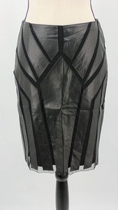 ETCETERA 100% Genuine Leather & Mesh Trim Black Lined Back Zip Skirt Size 2
