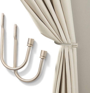 2Pcs Curtain Holdbacks, Metal U Shaped Hook Wall Mounted Tassel Curtain Tieback