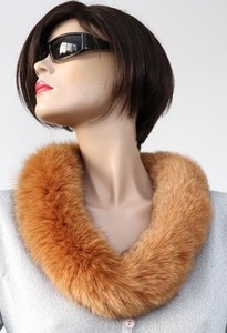 Fur Scarf Blue Fox Boa Loop fur Collar Coat Trim Neck Warmer Caramel
