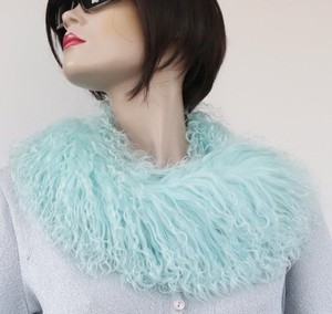 Fur Scarf Tibet Lamb Boa Fur Loop Collar Lambskin Coat Jacket Trim Ice Blue