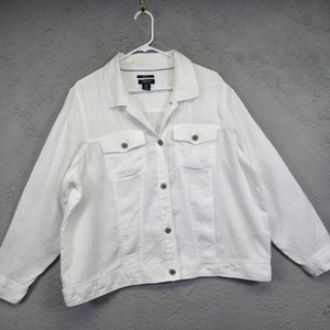 Jones and Co NY Jacket Womens 1X White Button Up Linen Utility Structured Sleek