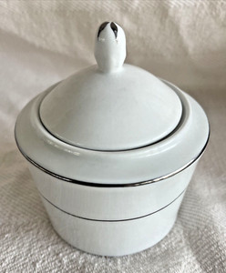 Vintage Fairfield Sugar Bowl w/lid Classic Platinum White Fine China Retired