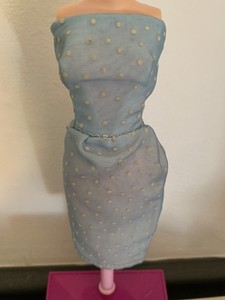Vintage 1960s Barbie Outfit CLONE Blue White Polka Dot Sheath Dress