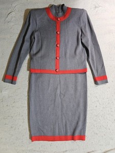 Vintage St John Collection by Marie Gray Knitted Grey & Orange Trimmed Suit Sz 4