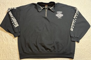 Harley Davidson Black Sweatshirt Men 3XL Motorcycle 1/4 ZipSkull Eagle Wisconsin