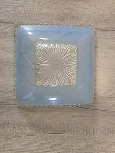 Vtg Art Deco MCM Mint Blue & Clear Square Ceiling Light Shade Hobnail Edge 11"