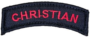 CHRISTIAN NAME TAG RELIGIOUS ROCKER ARC TAB HOOK BLACK RED TACTICAL MORALE PATCH