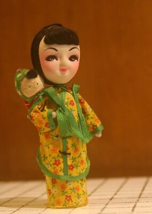 VTG Asian Peg Doll w/baby Handmade Hand Painted Taiwan ROC Original