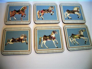Vintage PIMPERNEL Deluxe Finish Coasters Set of 6 CAROUSEL HORSES with Box