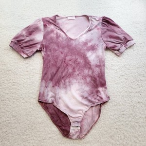 Pink Lily Body Suit Top M Pink Tie Dye Soft Puff Sleeves One Piece Vneck Fitted