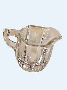 Antique Green Ribbed Ringed Ceramic Pitcher 5.5 Inch Tall