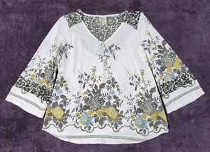 Fig & Flower Womens Floral Chiffon Blouse Kimono Sleeve Size XL Boho Flowy