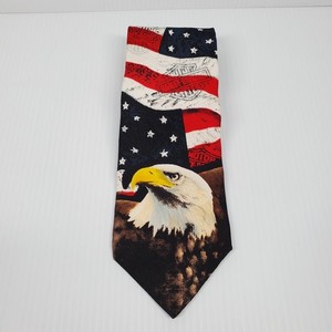 Ralph Marlin Vintage 1997 Harley Davidson Logo Silk Necktie USA Flag and Eagle