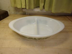 Vtg. Glasbake Garden Herb Milk Glass Divided Casserole Dish J2352 FREE SHIPPING