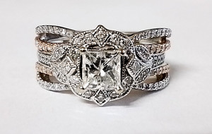14K White & Rose Gold Princess Cut Diamond Wedding Set–Size 7 - 8.3g