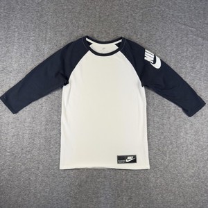 Nike Shirt Mens Small White Navy Raglan 3/4 Sleeve Baseball Swoosh 834856-100
