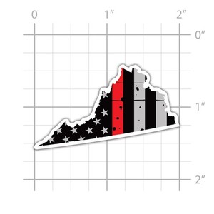 Distressed Red Line Virginia State Shaped Subdued Sticker for water bottle