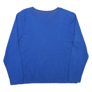 TOMMY HILFIGER Womens Blue Plain Crew Neck Basic Knit Jumper 2XL Cotton Blend
