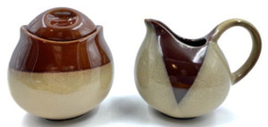 Sango Brown Drip Pottery Creamer & Sugar Bowl Set with Lid Japan 4933 MCM