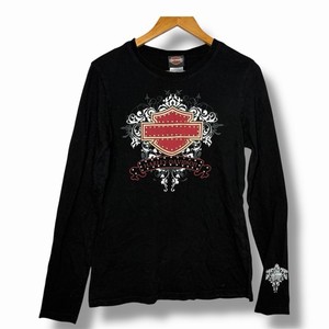 Harley Davidson Studded Logo Women’s Long Sleeve T-shirt Size Medium Black Red